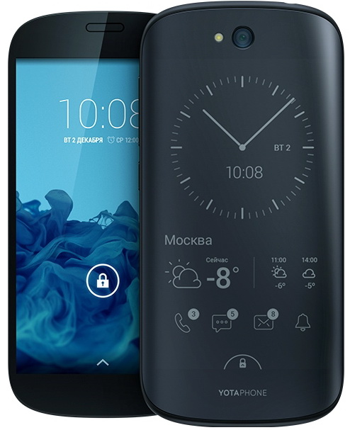 Мобильный телефон Yota Devices YotaPhone 2 выпущен брендом Yota. По форме исполнения аппарат имеет вид моноблок, а его габариты имеют 69.4 x 144.9 x 8.95 мм, а вес 145 г. В устройстве применяется батарея 2500 мАч Li-polymer (Литий-полимерный), Беспроводная зарядка, Быстрая зарядка, Несъемный. Как обещает производитель длительность общения до до 41 часы 36 минуты41.6 ч (2G), до 26 ч (3G), до 13 часы 48 минуты13.8 ч (4G) период ожидания до до 397 ч (2G), до 406 ч (3G), до 387 ч (4G). В Yota Devices YotaPhone 2 устанавливается сенсорный дисплей 5" с разрешением 1080 x 1920, который покрывает 68.76 % лицевой панели сотового. Тыловой модуль камеры 7.95 Мп, 3246 x 2448 пикселей с разрешением видео 1920 x 1080 пикселей, 2.07 Мп. Передний объектив 2.07 Мп, 1920 x 1080 пикселей, 1920 x 1080 пикселей. Обрабатывает информацию гаджет на центральном процессорном устройстве Qualcomm Snapdragon 800 MSM8974AA, 2200 МГц (мегагерцы), 32 бит. Обрабатывает видеосигнал Qualcomm Adreno 330, 450 МГц, . Величина оперативной памяти 2 ГБ, 800 МГц. Величина встроенного запоминающего устройства 32 ГБ, наращивается с помощью носителя Нет. Коммуникатор функционирует на программной платформе Android 4.4.2 KitKatAndroid 5.0 LollipopAndroid 6.0 Marshmallow.