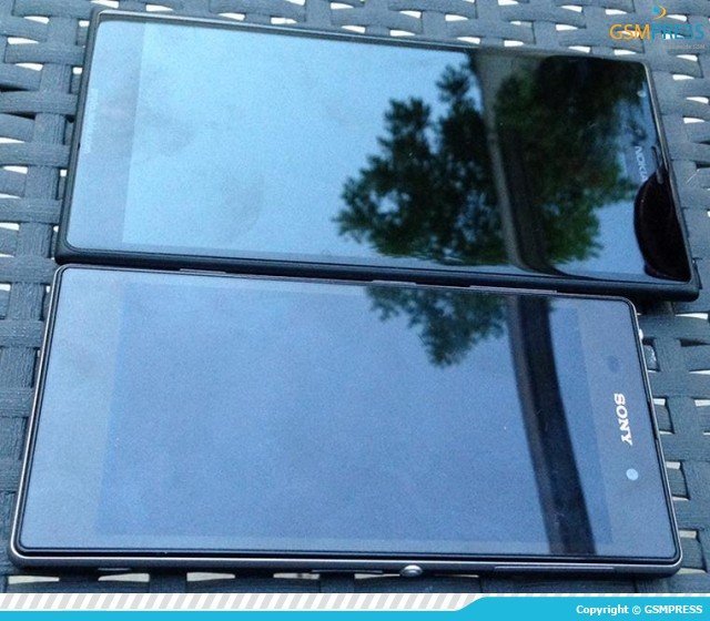 Фотографии показывают устройство в черном цветовом оформлении, причем на некоторых снимках он красуется в паре с флагманским аппаратом другой компании – Sony Xperia Z1. При больше на дюйм диагонали, чем у конкурента, разница становится налицо. Верхние и нижние грани приютили audiojack и порт MicroUSB. На боковой грани – качелька регулирования звука, кнопка блокирования смартфона и «горячая» кнопка для камеры. Притягивающая взгляды камера PureView оснащена классикой - оптикой Zeiss. Максимальное разрешение фотографий – 16 Мп.